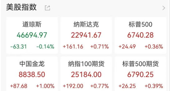 截至收盘,道指跌0.14%,纳指涨0.71%,标普500指数涨0.36%。其中,AMD盘中一度涨37.6%,最终收涨23.71%。纳斯达克中国金龙指数收涨1%,热门中概股多数上涨。