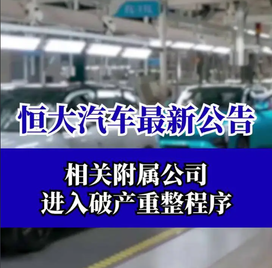 今年4月1日,恒大汽车就已公告,其间接全资附属公司恒大恒驰新能源汽车(上海)有限公司被上海市第三中级人民法院指定一名管理人负责破产清算程序。该决定书于2025年3月26日发出。